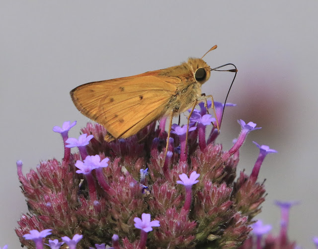 Another good visit to Wolf's Hollow Chester County Park. Much of the nectar is drying up and dying back at this point including the Joe Pye Weed and the fields of red clover so there were not as many butterflies flying as my last visit on 8/5/22. Last time, I estimated several hundred Eastern Tiger Swallowtails flying whereas today there were probably around 75-100 seen. That's still an amazing number of them to me. It's someplace I'd like to visit weekly next year as there is a potential for so many species here. I haven't walked any of the woods area where there could be species seen also. I did see my first Fiery Skipper of the season here. Sure wish it had been in my yard but hopefully, one will come visiting. I also saw Summer Azure, Common Buckeye, Variegated Fritillary, Cabbage White, Clouded Skipper, Black Swallowtail and Horace's Duskywing for a 21 species day. Plus the 4 to 6 Snowberry Clearwing Hummingbird moths I saw on the verbena. Again today, I only walked about 1/4 of the trail around the meadow.