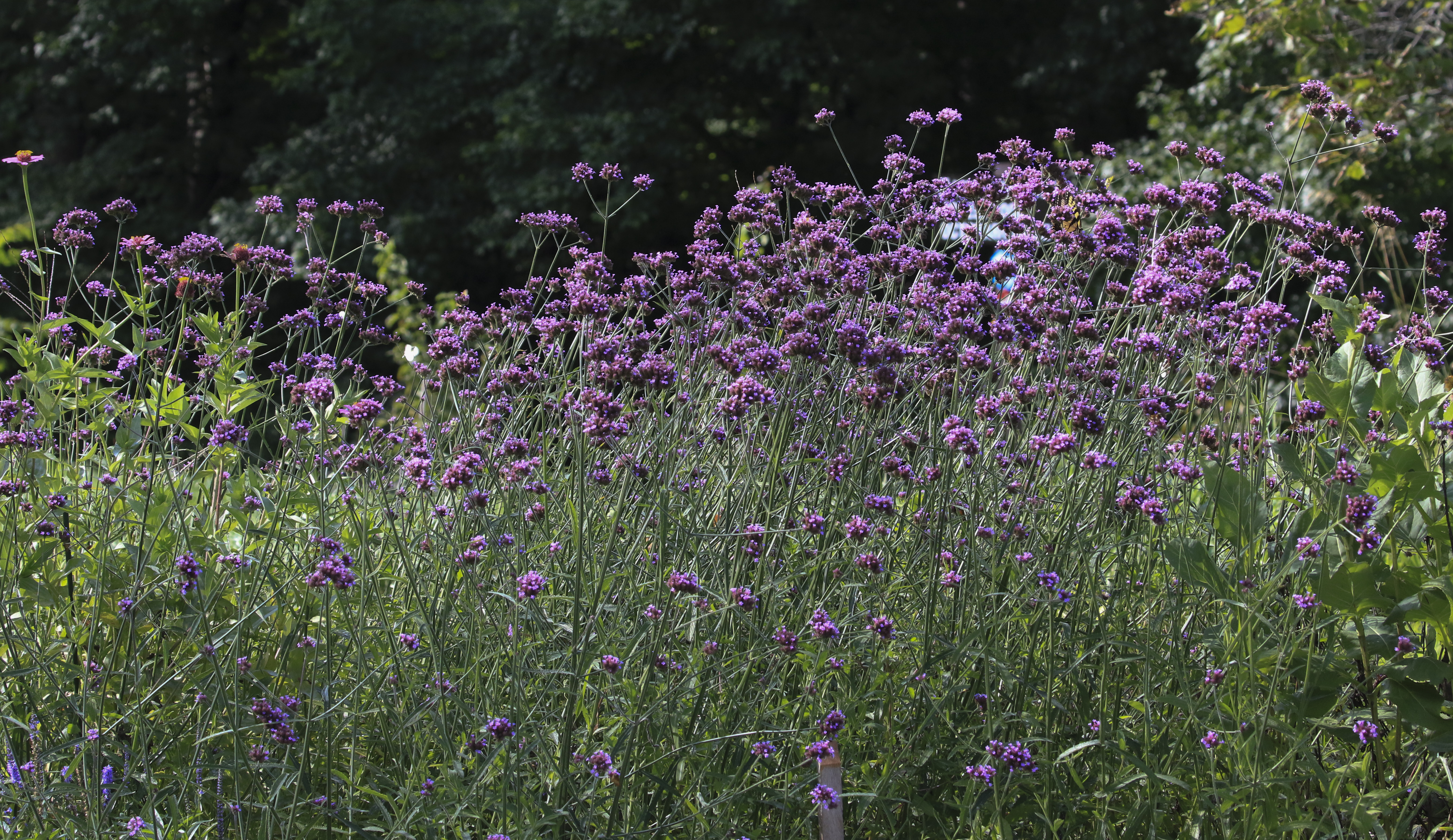Large stand of verbena bonariensis saw many skippers, hummingbird moths and butterflies nectaring on it. Thinking that this might be great for my yard as I tend to place mine between other plantings. |